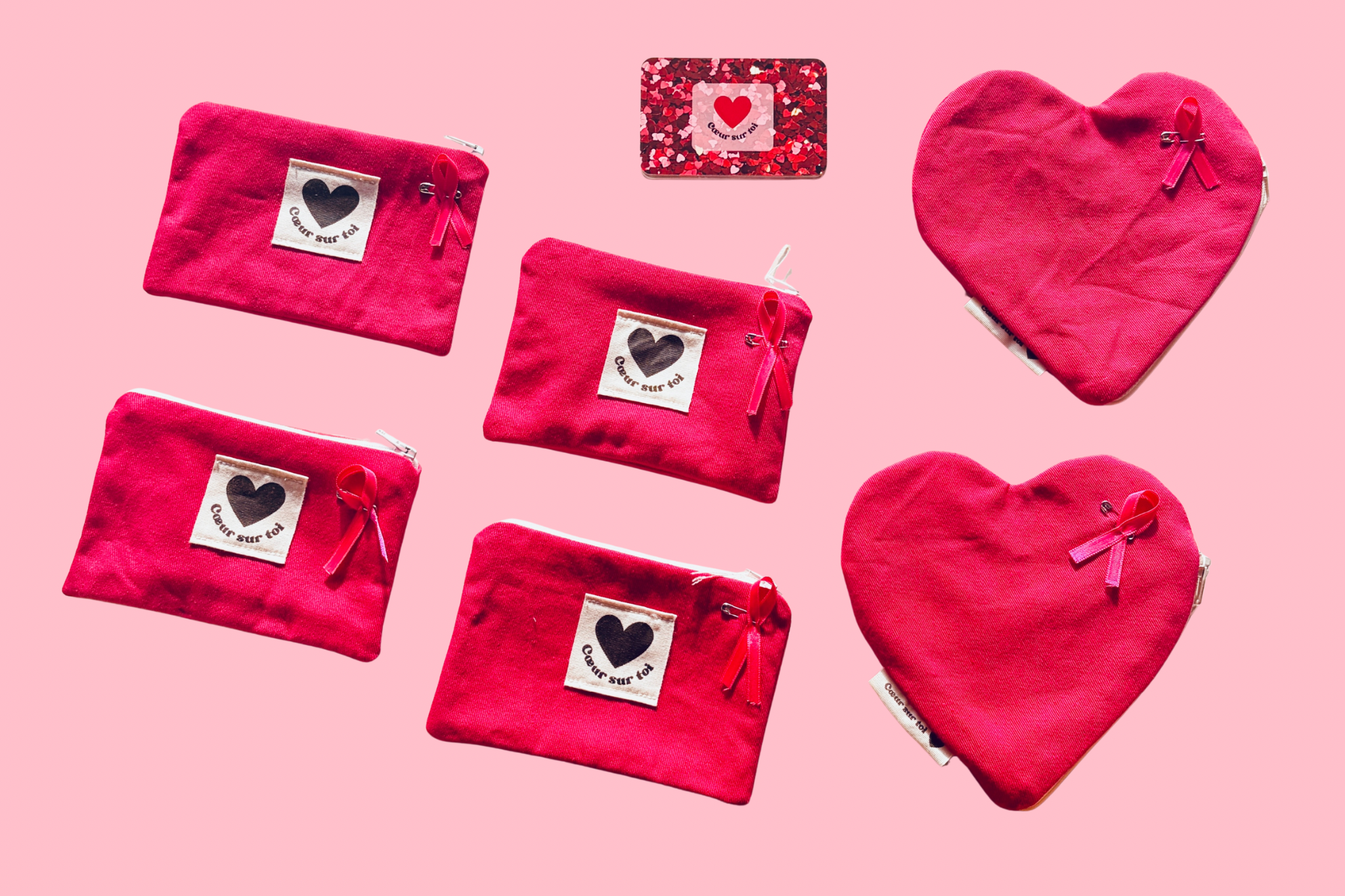Pour chaque création vendue , 2€ ( petite pochette ) & 4€ ( pochette cœur ) sont reversés à la ligue contre le cancer du sein 🩷