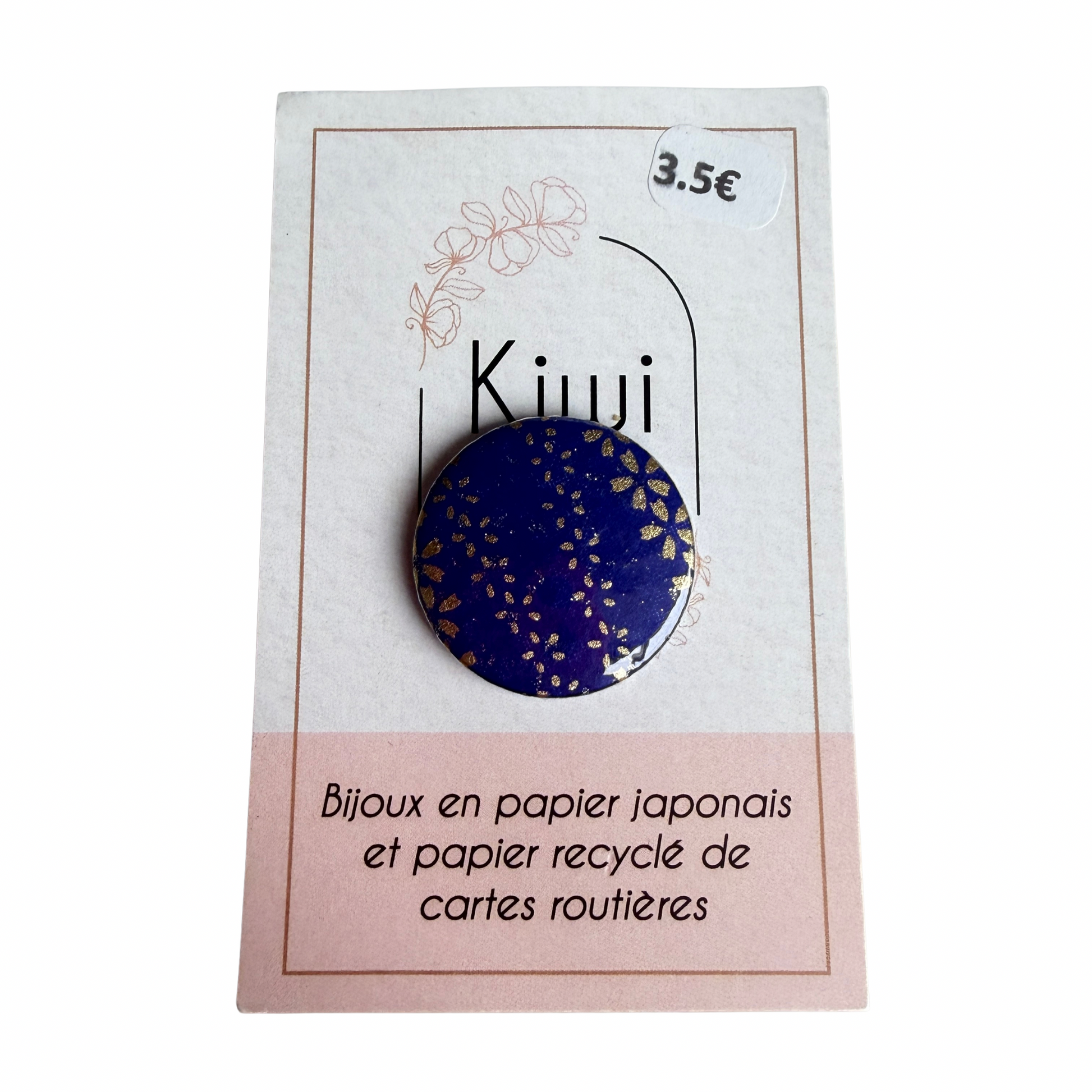 Ce badge unique met en valeur la beauté du papier japonais, illuminé par de délicates touches dorées qui lui confèrent une allure raffinée et intemporelle. Son motif subtil et ses finitions soignées en font un petit bijou de caractère, idéal pour personnaliser vestes, sacs, trousses ou accessoires du quotidien.