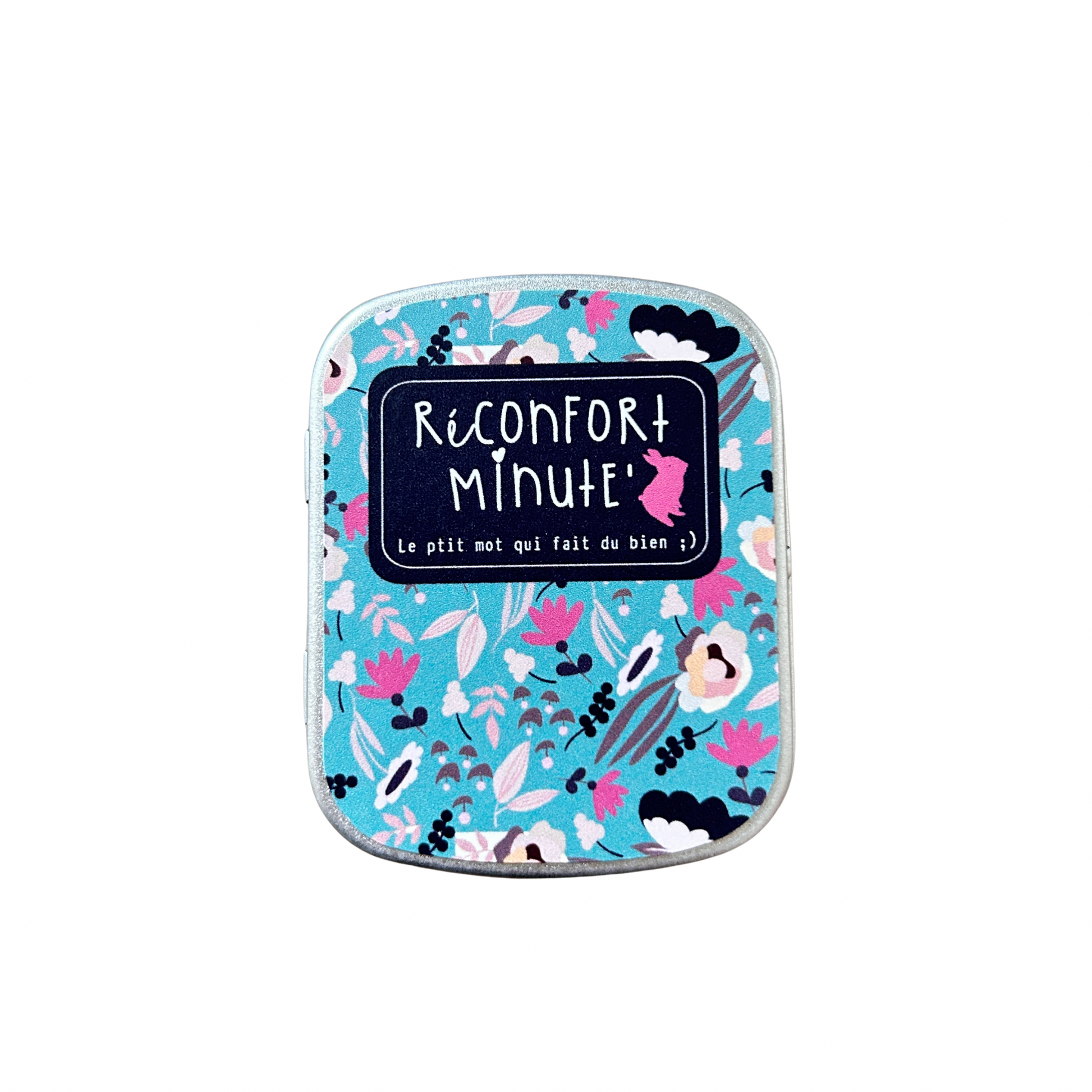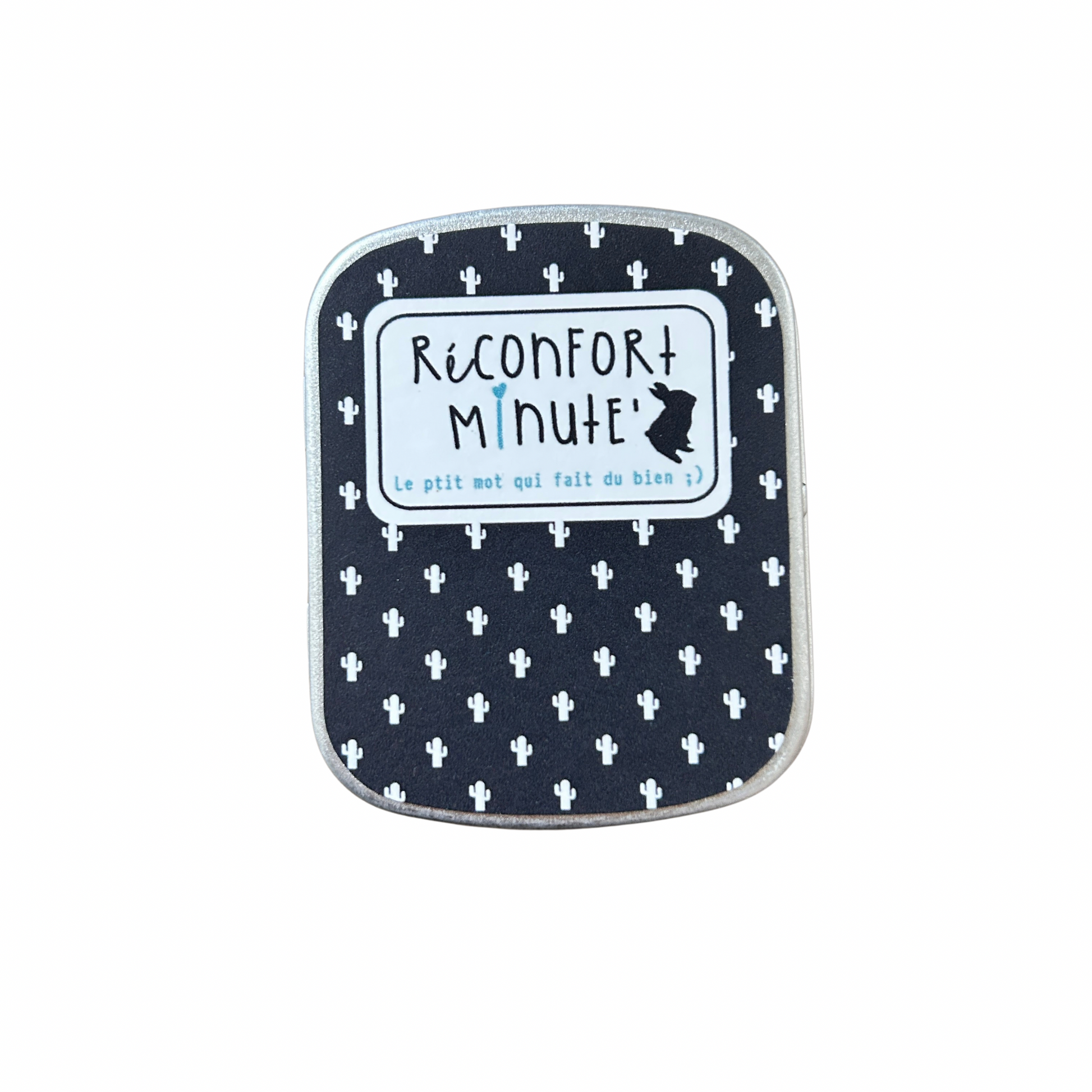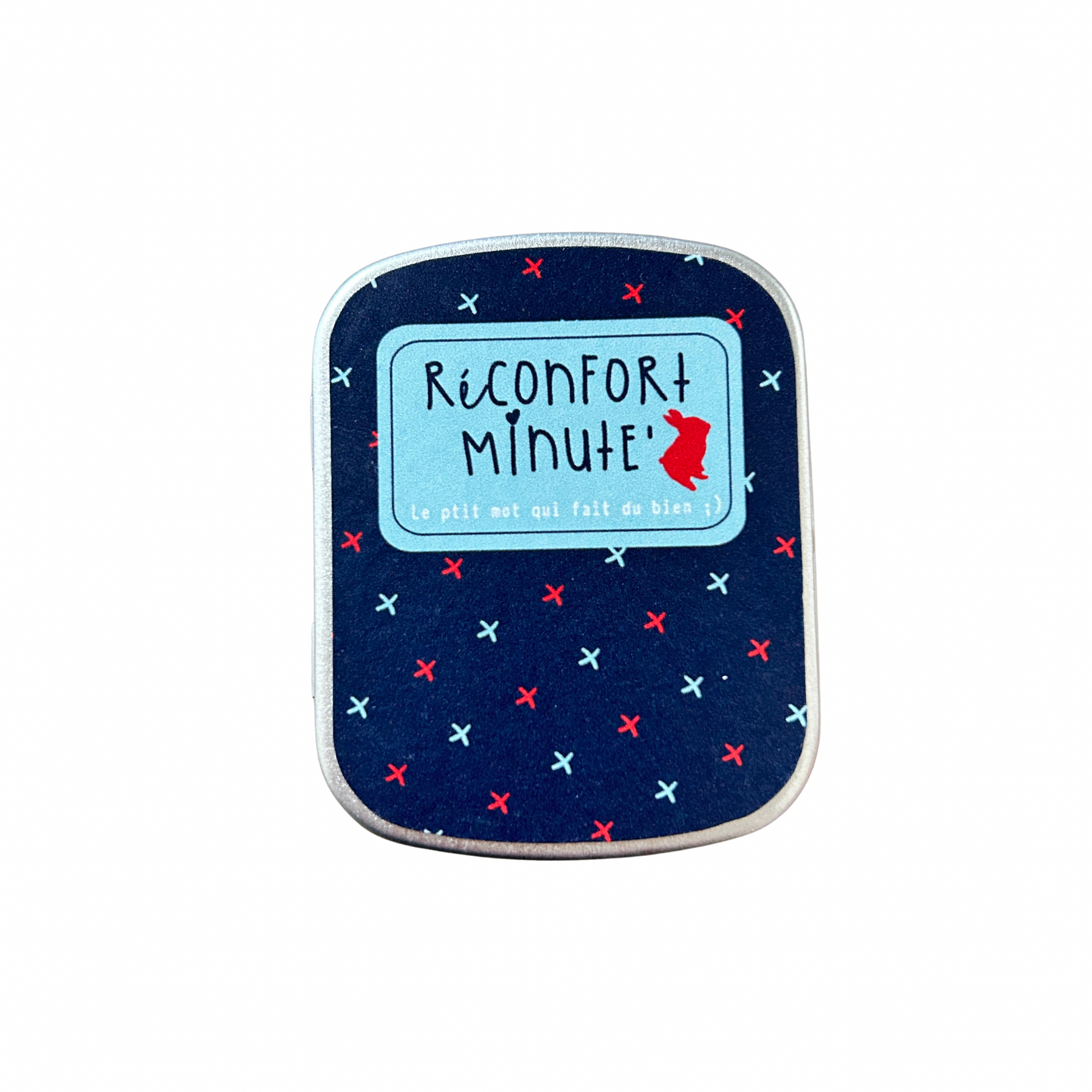 La boîte de réconfort minute est une jolie boîte en fer blanc, contenant un petit cœur en crochet accompagné d’un message tendre et bienveillant.
