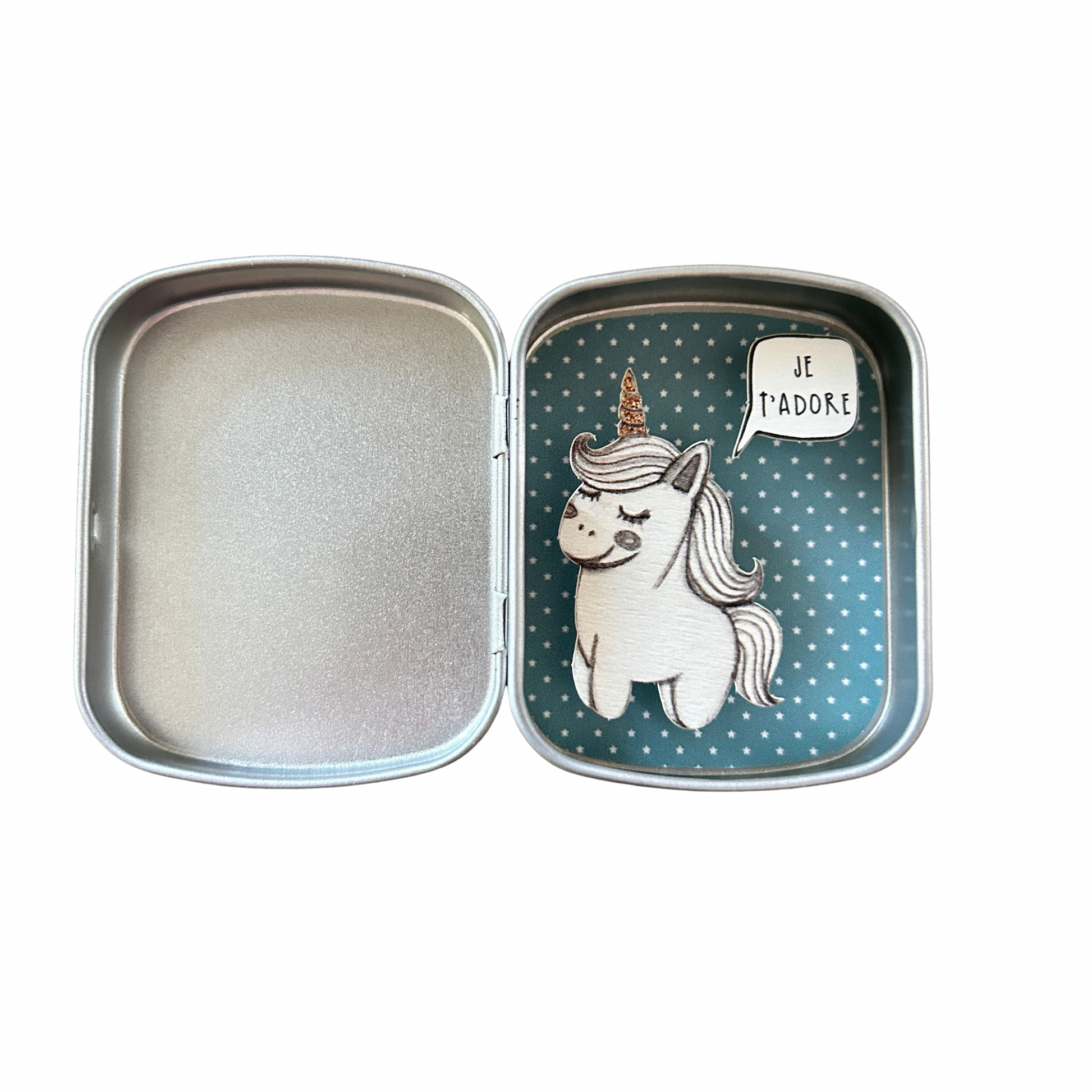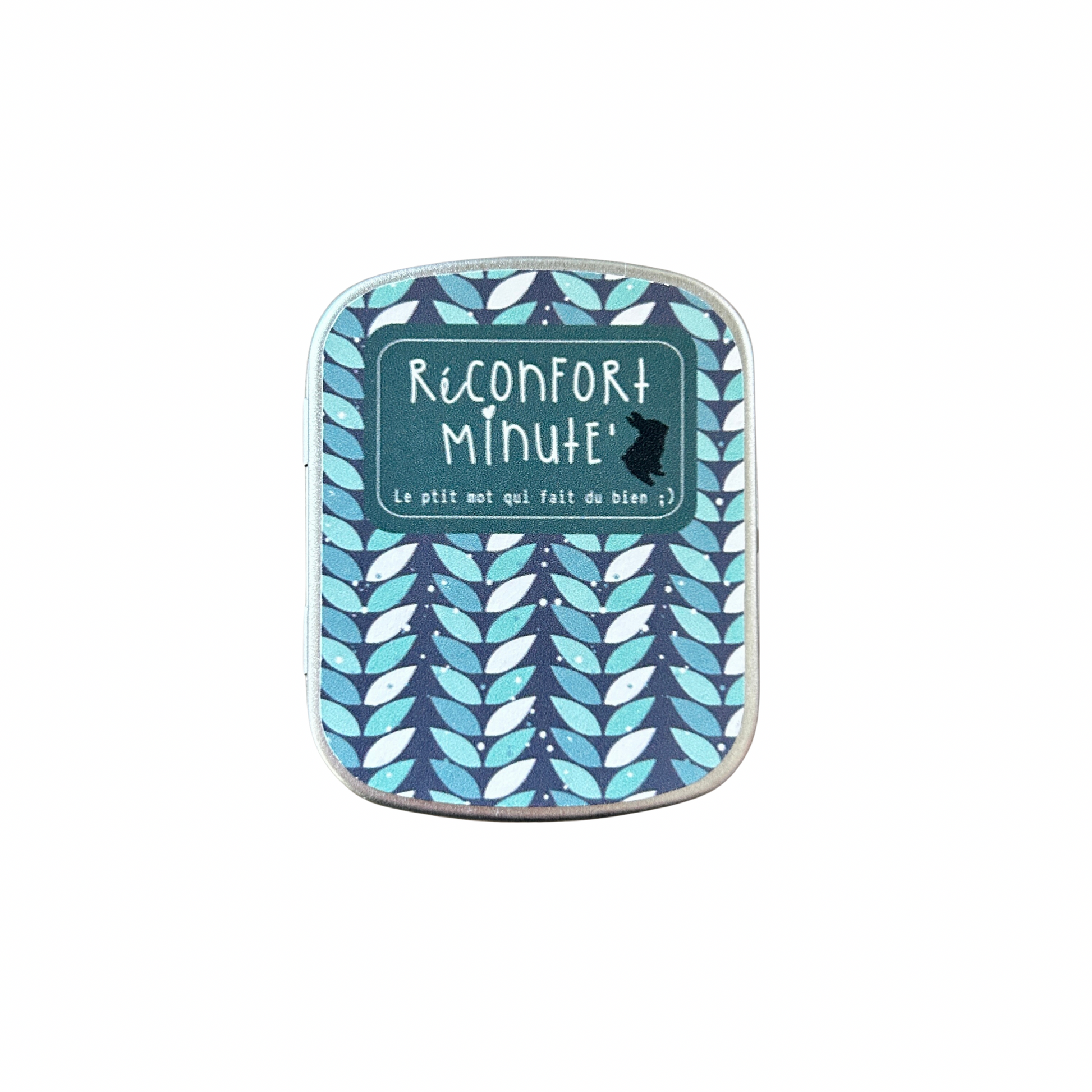 La boîte de réconfort minute est une jolie boîte en fer blanc, contenant un petit personnage illustré accompagné d’un message tendre et bienveillant.