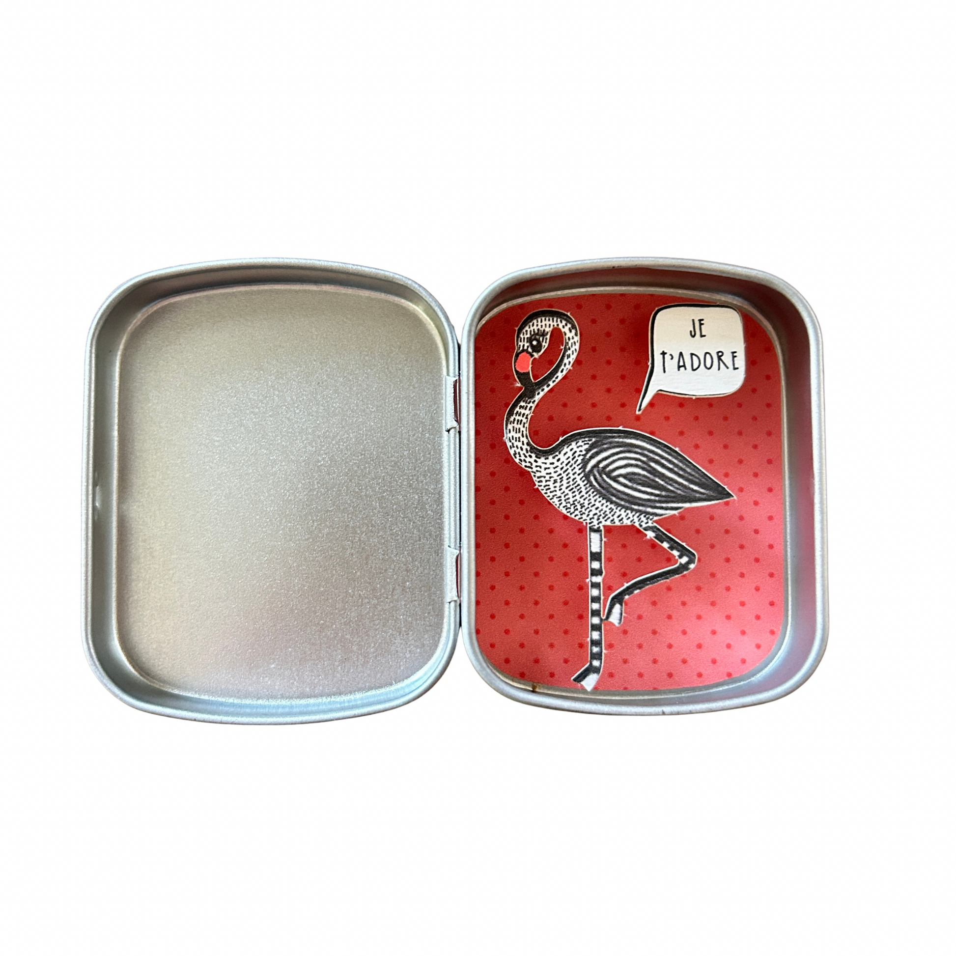Chaque boîte est unique, avec son illustration en papier et son mot doux personnalisé. Compacte et légère, elle se glisse facilement dans un cartable, un sac ou une poche pour être emportée partout.