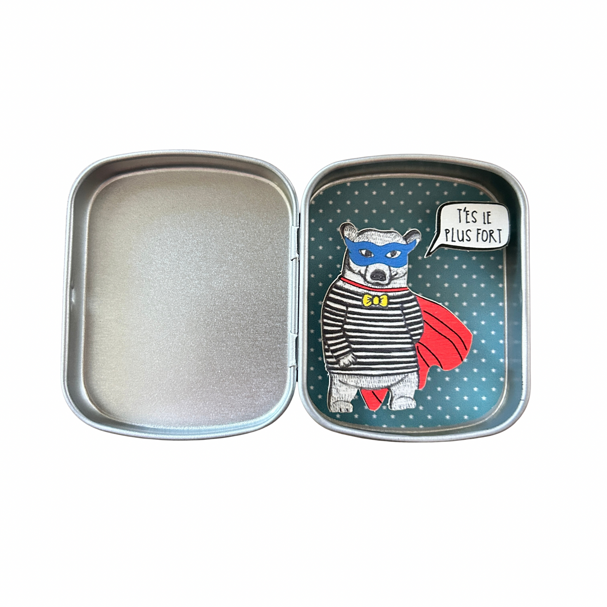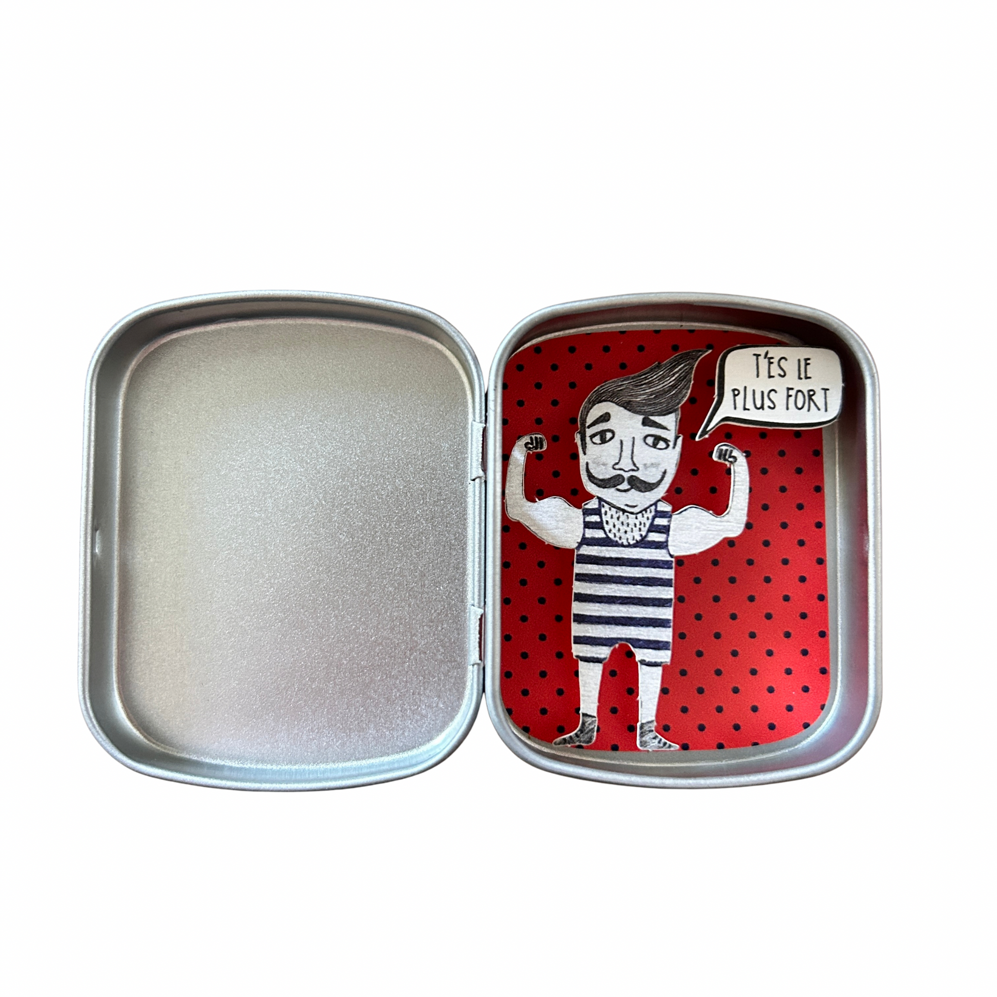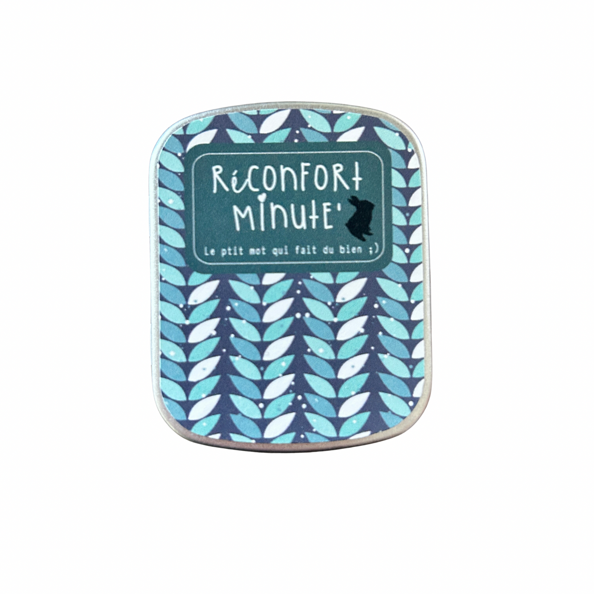 La boîte de réconfort minute est une jolie boîte en fer blanc, contenant un petit personnage illustré accompagné d’un message tendre et bienveillant.