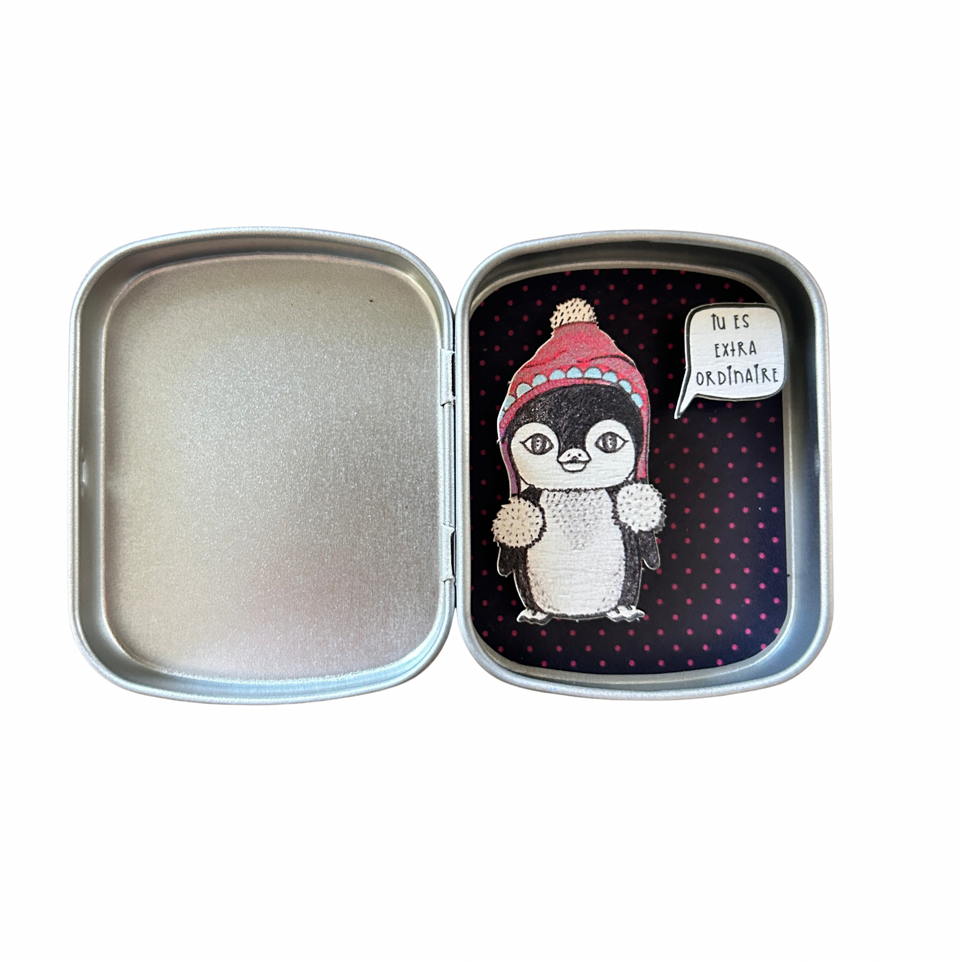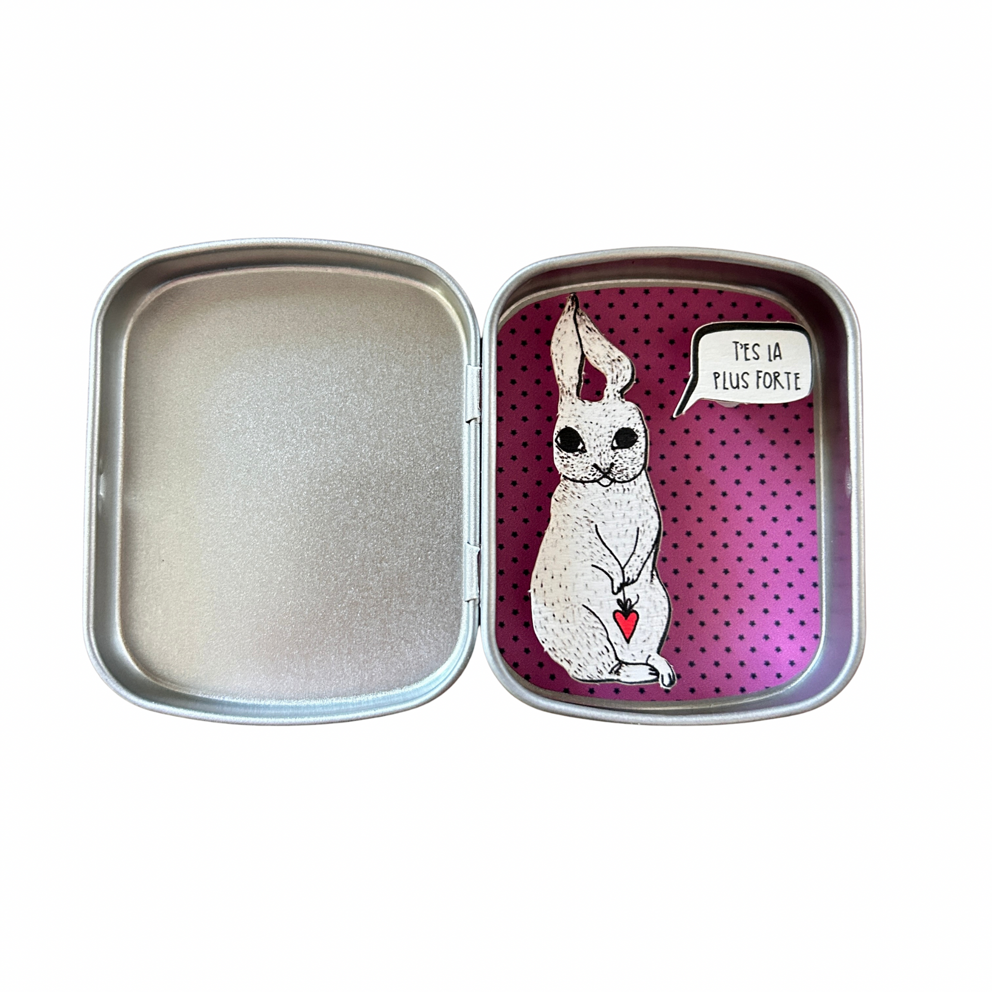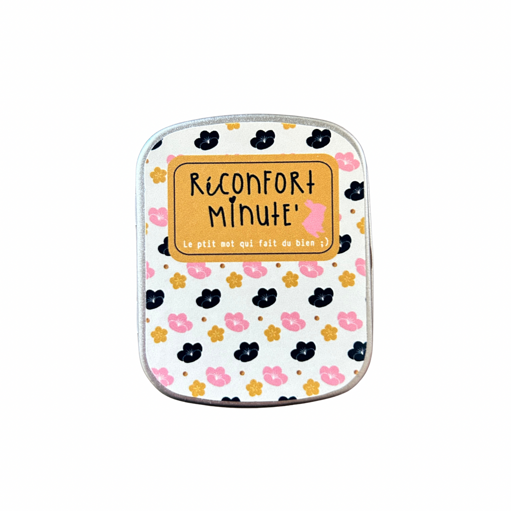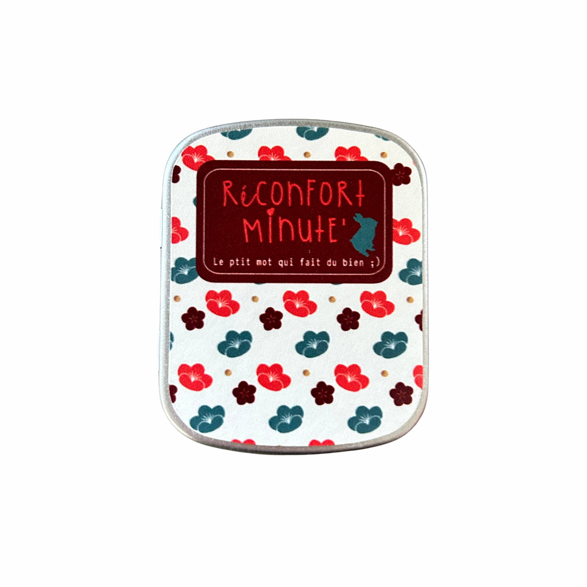 La boîte de réconfort minute est une jolie boîte en fer blanc, contenant un petit personnage illustré accompagné d’un message tendre et bienveillant.