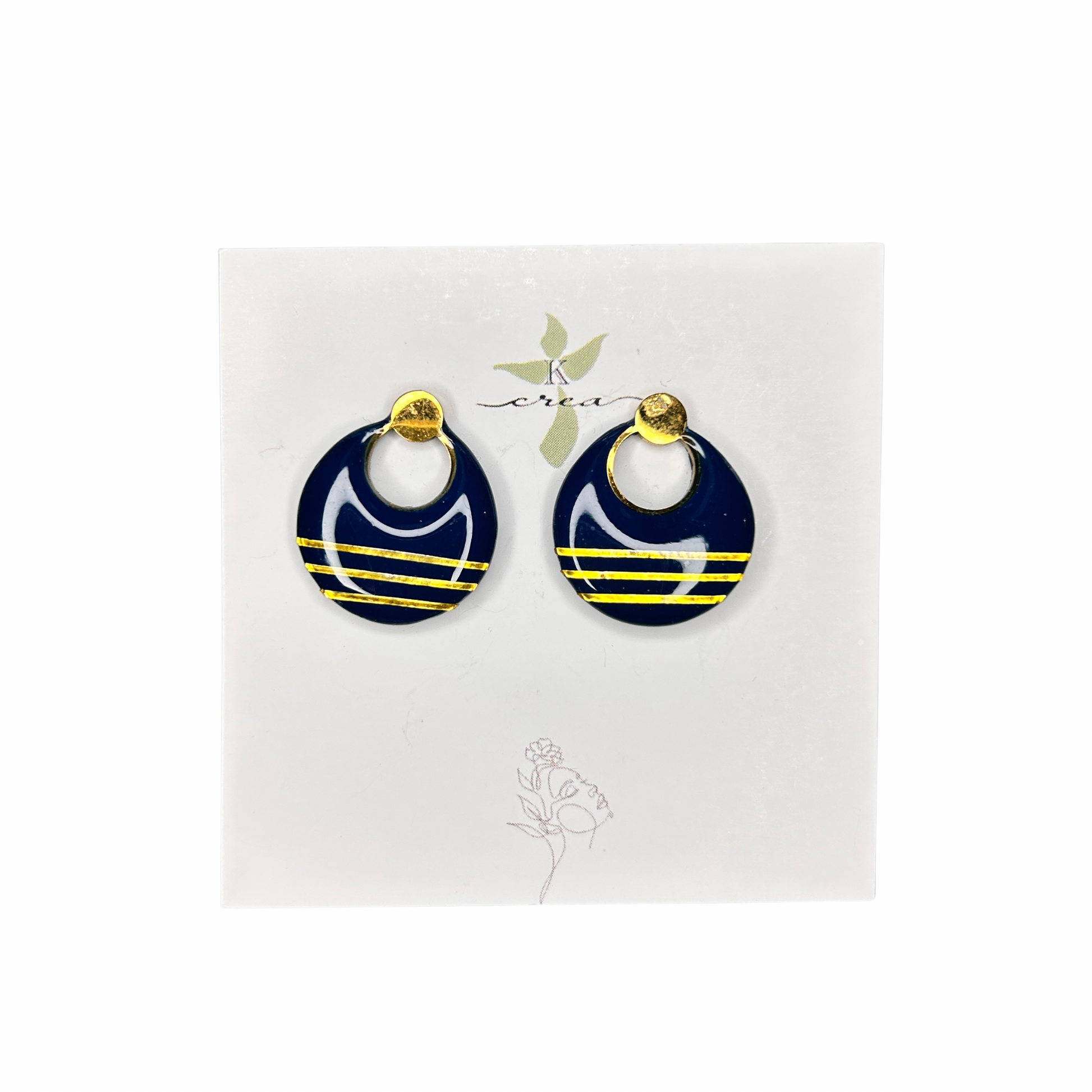 Laissez-vous envoûter par l’élégance naturelle des boucles d’oreilles . Leur motif feuillage doré sur fond bleu profond évoque la beauté végétale dans un style à la fois audacieux et raffiné. Des pièces uniques qui capturent la nature avec sophistication.