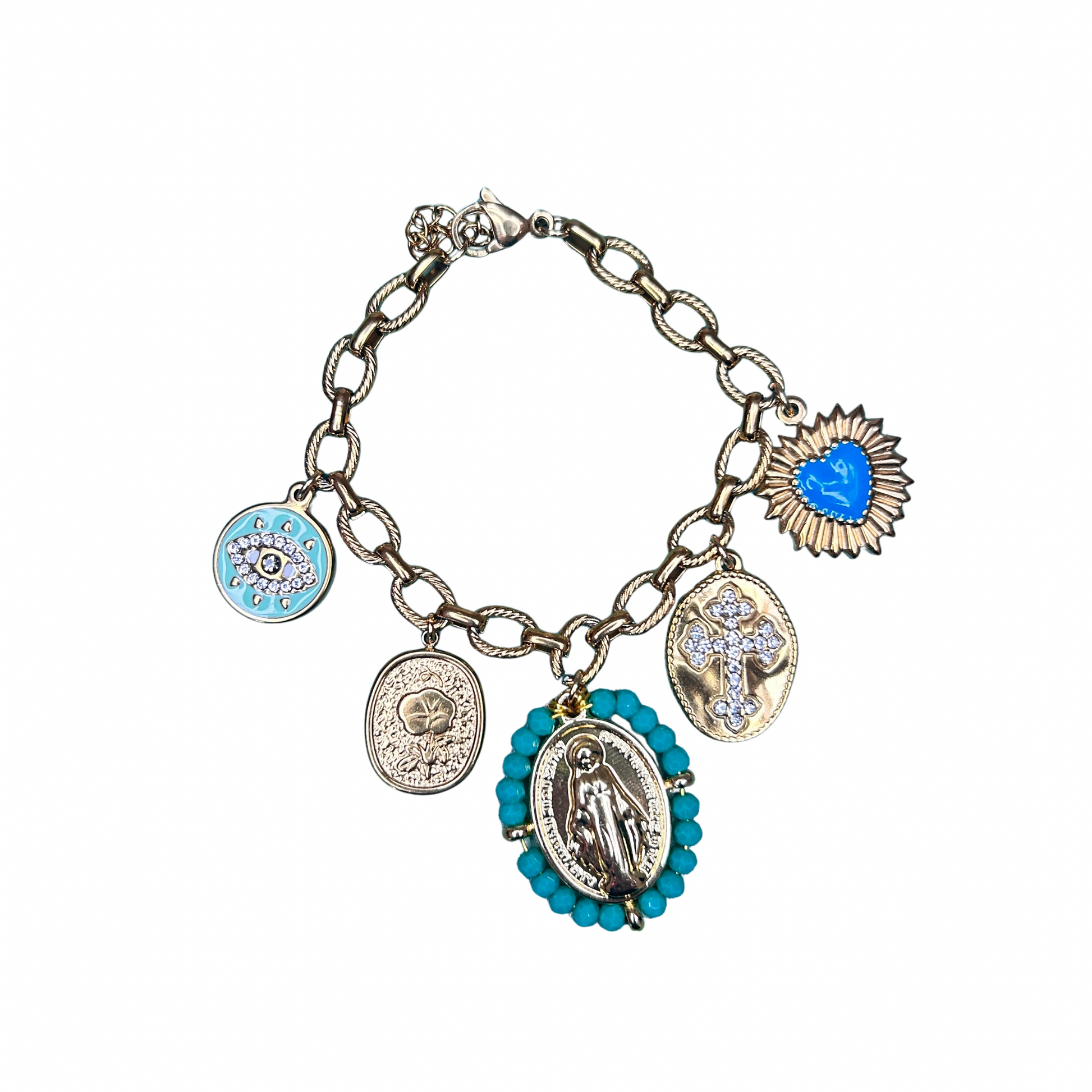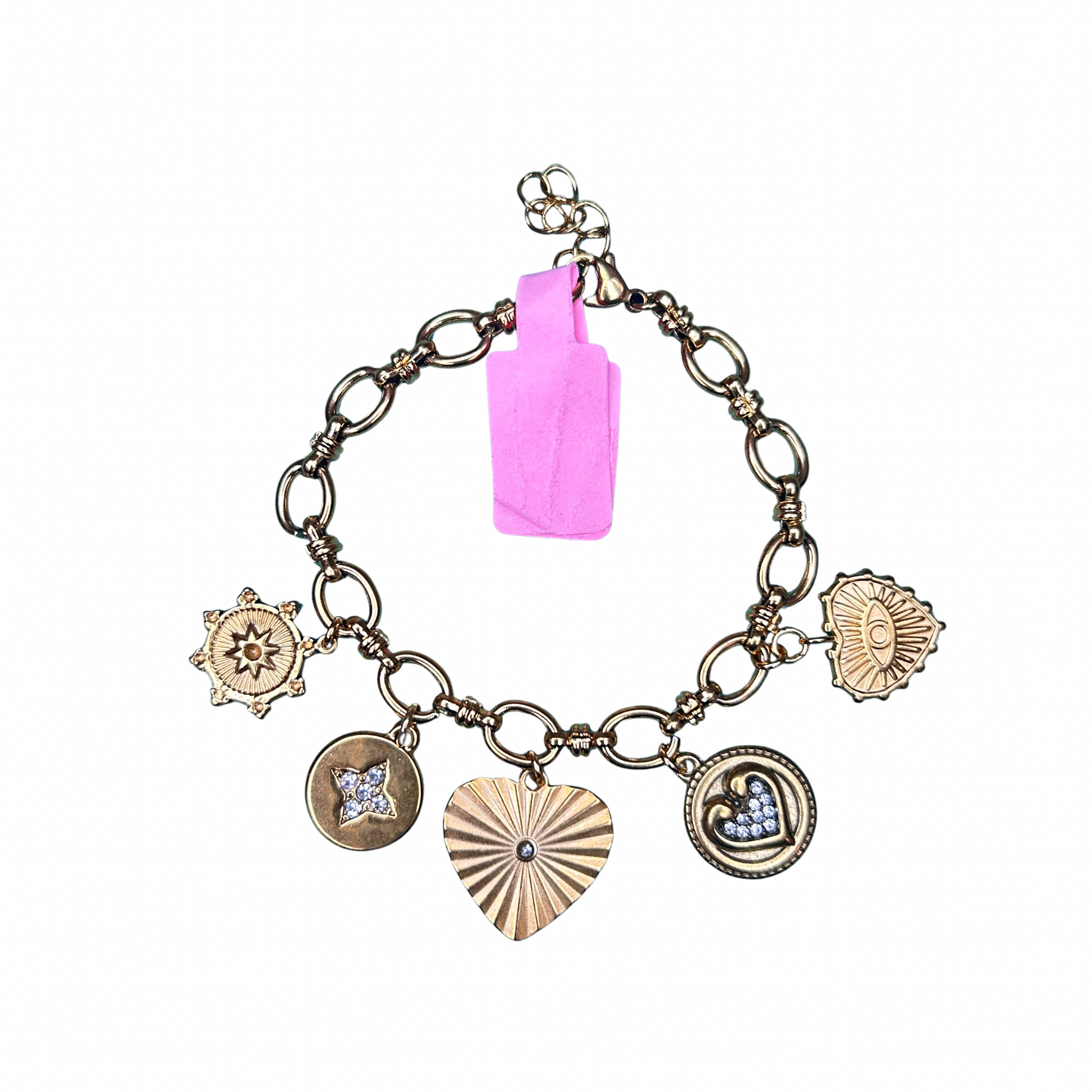 Chaque bracelet est composé d’une chaîne dorée résistante et ajustable, ornée de 5 breloques originales, pour un style à la fois bohème et moderne.