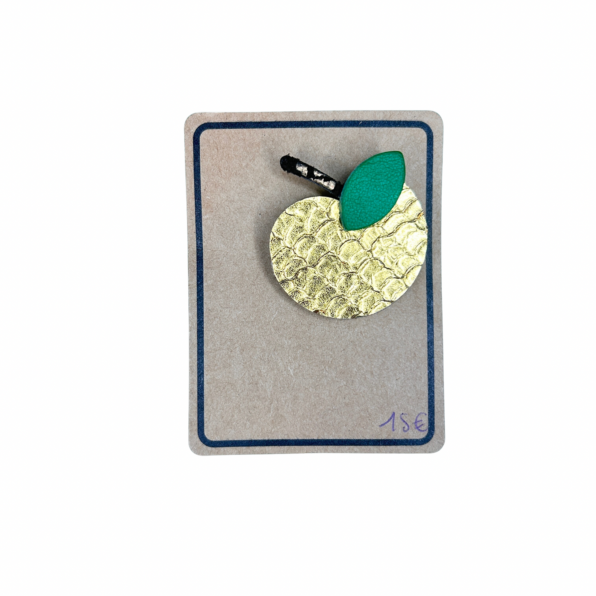 Ajoutez une touche fruitée et colorée à vos tenues avec la broche Osulis en forme de pomme. Réalisée en cuir hyper coloré, cette broche est légère et facile à porter, avec une attache solide pour fixer sur vestes, pulls, sacs ou manteaux. Son design en pomme ludique et originale apporte une note joyeuse et unique à votre style.