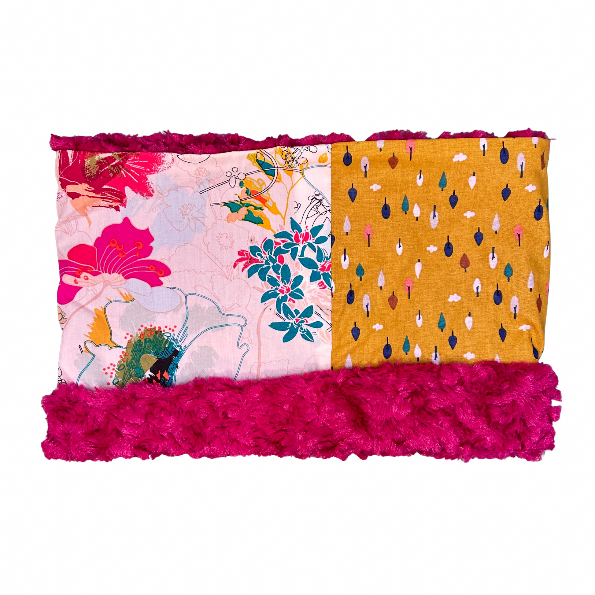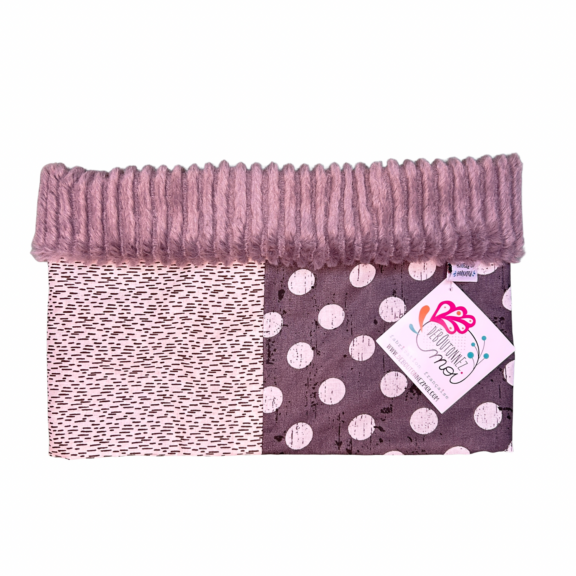 Fabriqué à la main avec soin, il associe un tissu en coton imprimé à une fourrure synthétique ultra moelleuse. Facile à enfiler, il protège du froid sans gêner les mouvements.