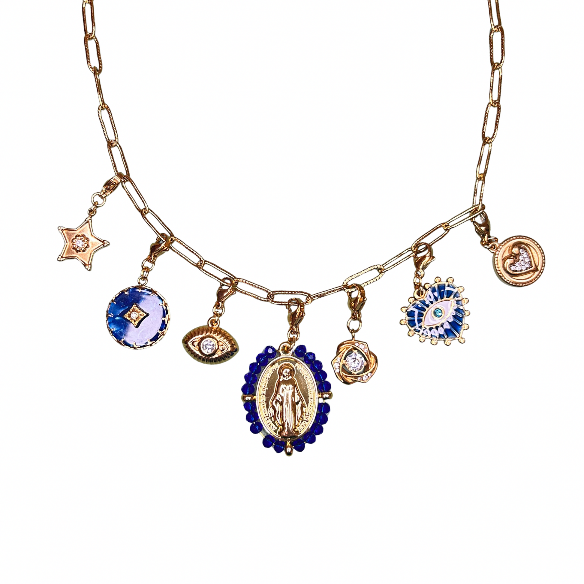 Que vous soyez attirée par les symboles protecteurs, les accents marins ou les détails fantaisie, chaque collier raconte sa propre histoire.