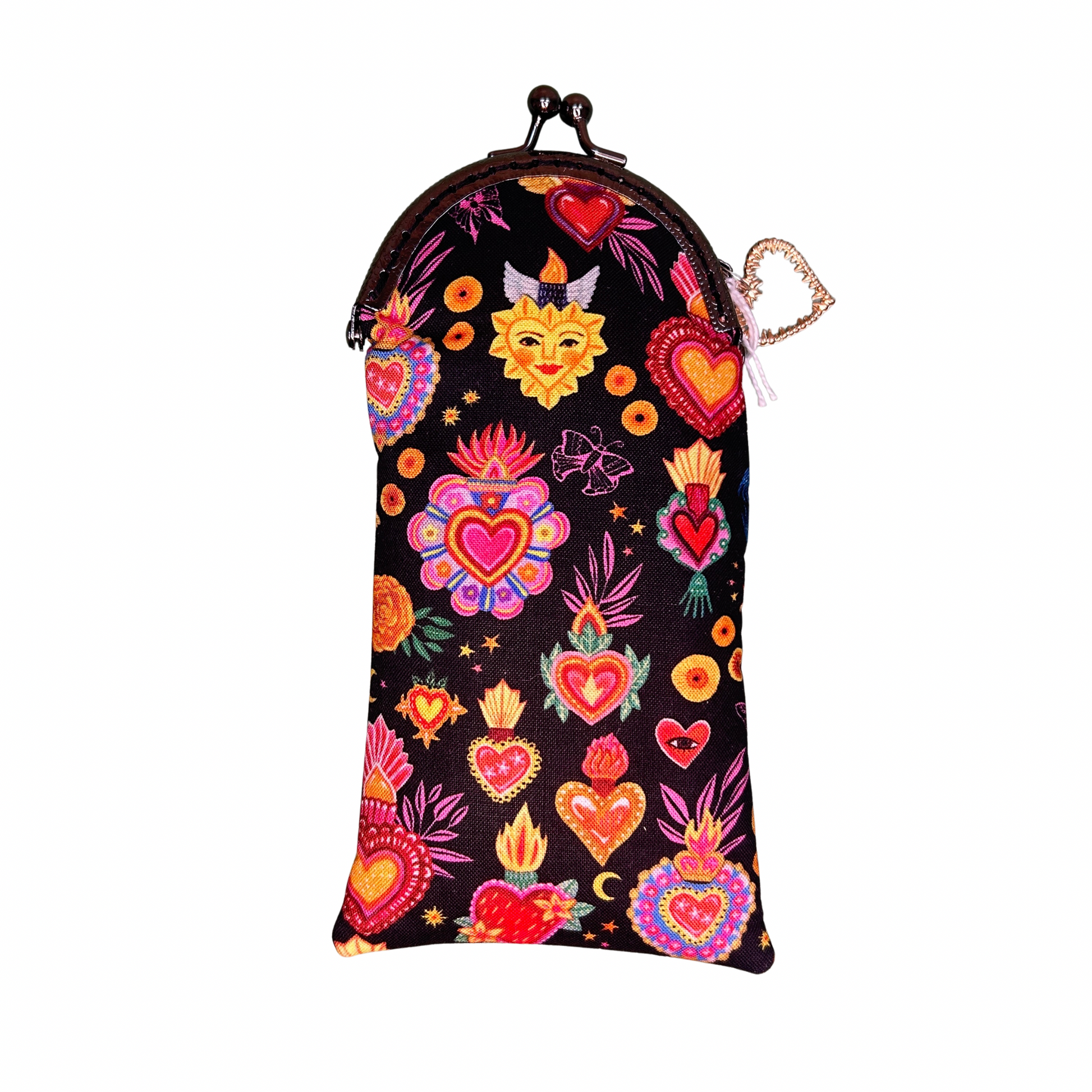Ce modèle associe un tissu coloré à du similicuir noir, pour un rendu à la fois moderne et intemporel. Avec son fermoir rétro type minaudière, il protège vos lunettes avec style tout en offrant une belle finition créateur.