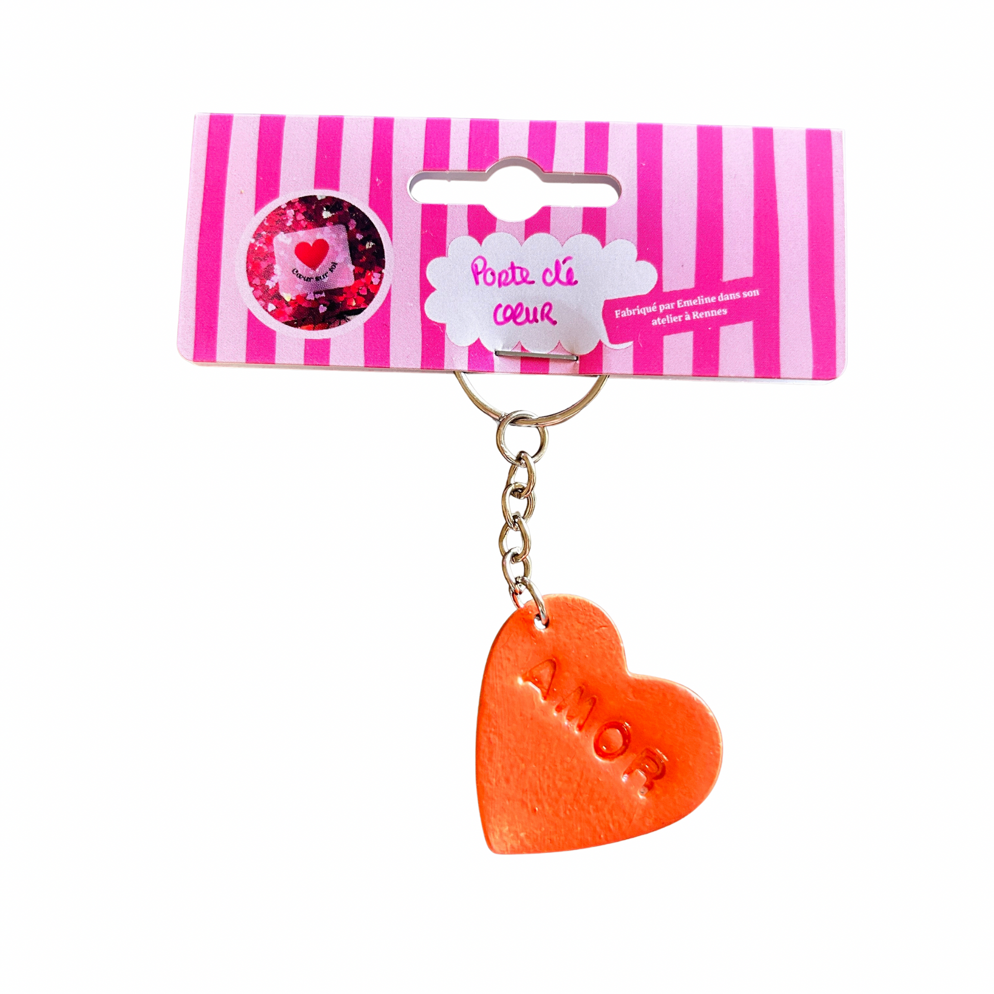 Craquez pour ce porte-clés unique en forme de cœur 💖, façonné à la main en argile auto-durcissante.