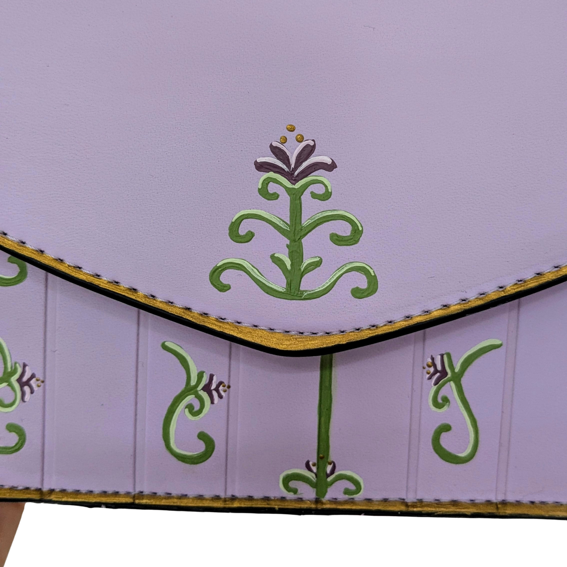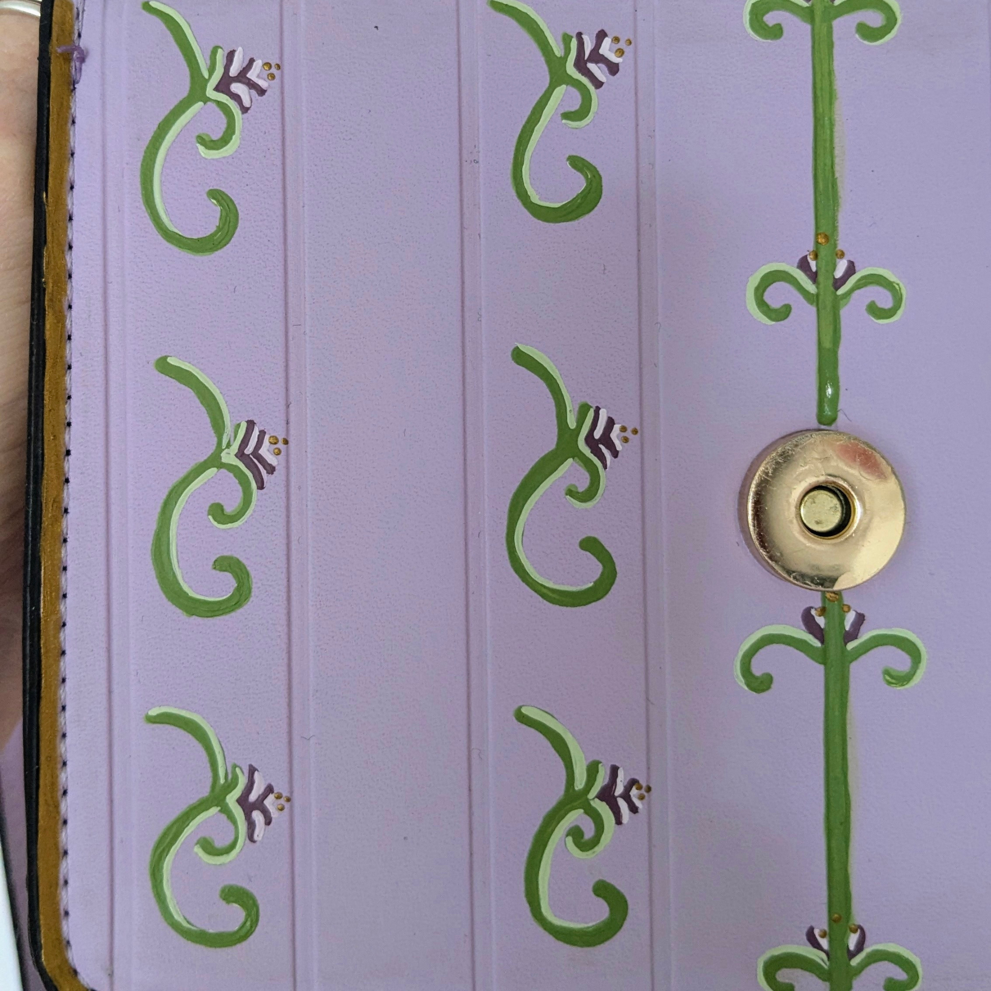 ✨ Décor : fleurs violettes et vertes, ponctuées de petits points dorés peints à la main