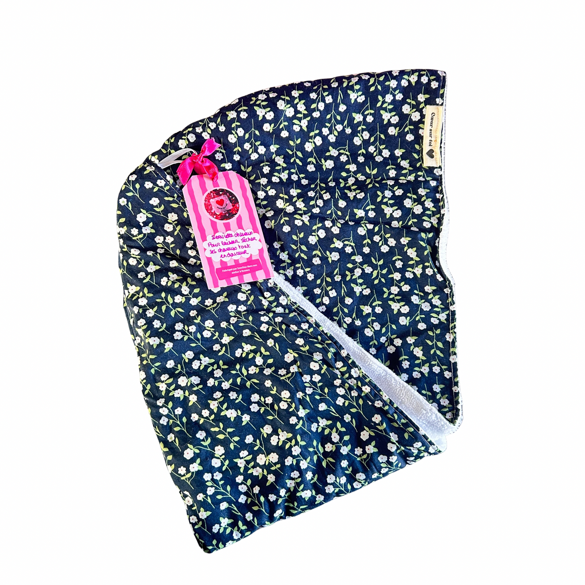 L’extérieur en coton apporte style et légèreté, tandis que l’intérieur en éponge bambou ultra-absorbante prend soin de vos cheveux en douceur.